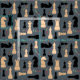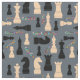 Silhouette bilder av schessmän från svarta och beige färg. Dekorativt färgat ord: schack, check, schack, spel, drag, mästare, vinnare, tänka. Du kan ändra färg i bakgrunden. Lustigt och elegant schackdesignväv.