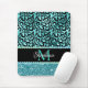 Den glamorösa svarta och blå tealleoparden skriver ut mönster överst. Faux teal glitter (från foto) på grund. Det finns ett vattenhaltigt filteröverlägg som appliceras på faux glatta rinestoner. grönt över vattenytan. Skapa din egen akva, turkos, teal, svart och vit chic kalligrafi personlig monogram muspekad. Välj önskat stil för calligrafteckensnitt för contemporaryn.