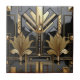 Beautiful shiny black and gold geometric shapes elegant , art deco, art nouveau tile with a geometric and gold palm leaves on each side.