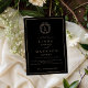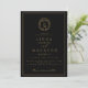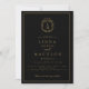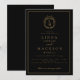 Black and gold botanical crest monogram wedding inbjudningar
