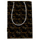 This elegant and glamorous holiday gift bag features Merry Christmas gold script word art on a black background. This is perfect for giving gifts and party favors.