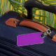 Bagagetagg med ett heltäckande redo i svartvitt och Lila Lavender för din bild eller text, eller så kan du använda det som det är.