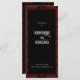 Vi presenterar menyn för den svarta och röda blommigten, gotic mörk elegant bröllop - perfekten är rätt sätt att ange tonen för din stora dag. Den här inbjudan har en slående design med svart och röd blommigt och är sofistikerad och elegant, med en aning goteskt flust. Det invecklade blommönstret lägger till en liten bit romantik, skapar det perfekten för en elegant och ett unikt icke-traditionellt bröllop. Det här menykortet i bröllop innehåller en lista över diskar, ditt pars namn, datumet i bröllop osv.