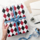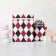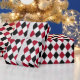 Fet svart och röd harlequin med diamantmönstrad papper förpackning.