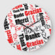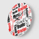 Den här klockan på 10,75 tum är en sport som är designad med röd och svart Tack skriven på flera språk och en mängd olika typsnitt på stilar över vitt. Designen ställs in på en liten diagonal. Klicka på Anpassa! om du vill markera en annan bakgrund än vit färg när du går till Redigera och sedan Bakgrund.