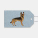 Black and Tan German Shepherd Cute Hund on Blue Presentetikett