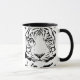 Fantasic abstract black and white illustration of a Bengal Tiger head on a clean white background with black handle and interior to match the drawing. You can choosee your own mug design and size.