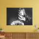 Ett svart och vitt foto av en enkelsidig fjäril som genomsöktes på en blomma.