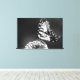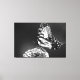 Ett svart och vitt foto av en enkelsidig fjäril som genomsöktes på en blomma.