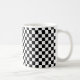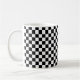 Black and white checkerboard pattern with evenly spaced, alternating squares. The design creates a classic, symmetrical look commonly seen in chessboards.