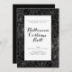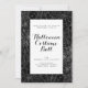 En chic för en inbjudan till Halloween fest. I gräns finns en rektangel med vita kuber på en svart bakgrund. På framsidan kan du ändra informationen och ord "Halloween Costume Boll" till kostym till din händelse. På baksidan finns det gott om utrymme för dig att lägga till mer information om Halloween fest och OSA i ett modernt vitt teckensnitt på en vanlig svart bakgrund.