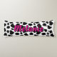 Black and white cow spots personalized Body Pillow. Fun animal print design with custom name. Long cushion for bedroom.