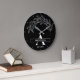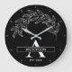 Black and White Family Name Monogrammed Clock design with floral elements. A chic and timeless wall clock featuring elegant white floral accents on a clean black background with your custom family name and monogram. A modern minimalist design that fits perfectly in any living room, bedroom, kitchen, or office. A thoughtful personalized gift for housewarming, weddings, anniversaries, or anyone who loves classic black and white decor. Customize with your family name and initials to make it uniquely yours.