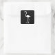 Enkel form för en flamingo i vitt mot en svart bakgrund.