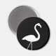 En ljusvit flamingo på svart bakgrund, accentuerar magnet, skapar roligten och summery.