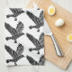 Black and White Flies Raven Lino Klipp Kökshandduk