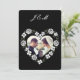 Black and White Floral Heart Wedding Invitation Julkort