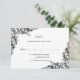 This wedding RSVP card features a timeless black-and-white design with elegant botanical line art framing the corners, creating a refined and romantic look. A classic serif “RSVP” heading sits at the top, followed by a clear response-by date, with ample space for guests to write their names and indicate whether they will accept with pleasure or decline with regrets, along with the number attending. The clean layout and delicate foliage details give the card a formal, understated charm well suited to traditional, classic, or botanical-themed weddings. Personalize with your own information.