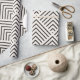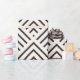 Black and white geometric pattern with overlapping diamonds and inward-facing lines, creating an optical illusion. The repetitive design feels rhythmic and modern.