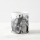 Vita färg-Mugg med Black Vector Bild i Träd, Shruber, House och People visas.