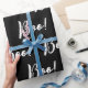 Black and White Halloween Ghost Boo Mönster, Papper. Det är designat med en roligt Halloween mönster i typografin "Boo!" i vitt trendig med fet stil, skript på svart bakgrund. Perfekt för en födelsedagsfest i oktober eller för använda för uppförande av pooky Halloween. Det här är en modern snyggt i roligt!