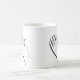 The mug shows a moment in time with a hand sketched in black and white on two sides of the mug. This hand can portray a thankful spirit and a kindred spirit alike making it the perfect gift for a friend. The palm of this hand is extended showing vulnerability and an invitation to continued friendship .