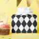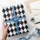 Fet svart och vitt harlequin med diamantmönstrad papper förpackning.