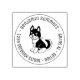 Svartvit tecknad illustration av en sitta husky-hund med lycklig flin, tunga ut. En enkel kerchef är bunden runt nacke. Observera att du kan behöva justera den information du anger genom att lägga till eller ta bort några tecken eller blanksteg för att justera namn och adress på rätt sätt.