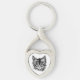 Black and White Kitten Ansikte Twisted Heart Silverfärgad Nyckelring