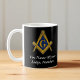 Firar traditionen och broderskapet med Freemason Square och Compass personlig mugg. Den här klassiska designen har symbolen iconic Masonic och kan anpassas med ett namn, platsnummer, datum eller meddelande. skapar den som en meningsfull gåva till en Mason eller en personlig keepé för att hedra din resa. Perfekt för kaffe, te eller varm dryck. Den här stenhårda keramiska mugg är både funktionell och symbolisk. Perfekt för daglig använda, Masoniska händelser eller som visning biet i ditt hem eller på din lott. Oavsett om du är en gammal medlem eller nyinitierad medlem, är den här anpassningsbarna Freemason mugg ett tidlöst sätt att spegla frimurningens värderingar - heder, sanning och enighet.