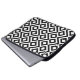 Den här snyggten, svart och vitt, geometriskt mönster är en ursprunglig dekorationsdesign. Vita medel vinkla runt svarta diamanter som innehåller vita diamanter. Svart zigzags ger en subtil separation mellan väg med lindning. Digitalt skapat bild. Copyright © 2013 Claire E. Skinner. Alla rättigheter förbehållna.