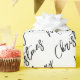 Black and white Christmas wrapping paper featuring a holiday greeting in a modern script font.