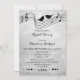 Elegant inbjudningskort för möhippan med två love birds på trådar i musik stil med anteckningar på en svart och vit bakgrund med snöre. Snygg för en brud som spelar ett instrument eller kärlek musik.