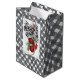 Make your gifts stand out with this elegant Vichy Chic Noël gift bag. Featuring a bold black-and-white gingham pattern, festive red jingle bells, striped ribbon, and sprigs of winter greenery, this bag blends rustic charm with modern holiday style. Perfect for wrapping small presents, holiday treats, or party favors with a cozy and stylish seasonal touch.