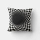 A tunnel-like optical illusion is created using a black and white checkered pattern, giving a dizzying sense of depth