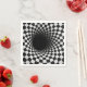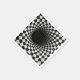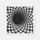 A tunnel-like optical illusion is created using a black and white checkered pattern, giving a dizzying sense of depth