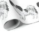 Desteis ursprungliga tecknad illustrerar en söt svart och vit jackar färg Phalène-hund som mönster.