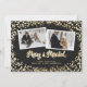 Gnistsvart och vit buffel med nylanserat jokertecken med ett kalligrafiskt typsnitt, guld snö, stjärnor, glansande julmagi ljus och två foton på svart bakgrund. Anpassa enkelt det här lilla fotojulkortet med dina foton och familjen namn.