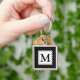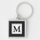 Black and White Polka Dot Modern Monogram Fyrkantig Silverfärgad Nyckelring