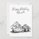 This is a Birthday Greeting card featuring a black and white sketched mountain and valley with a cabin and trees surrounding it. I love to draw sketches especially of mountains! This one gives the feeling of serenity and a quietness that is sought for in the busy lives of society. Your loved one will instantly appreciate the simplicity on the cover. Everyone loves receiving a Birthday wish!