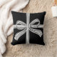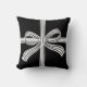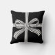 Add a touch of sophistication to your space with the black and white striped bow throw pillow. The hand-drawn white bow is accented with black stripes all set on a deep black background on both sides of the pillow. The playful design will make a fun statement all year round.