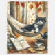 Den här coola djurbilden visar en svart och vit tuxedo-katt som sover i en hammock och drömmer om äventyr. Bredvid detta förtjusande kattunge ligger ett öppet bok och i bakgrunden finns det höstskog träd. Gör en underbar födelsedag, jul eller annan helgdag till kattunge älskare!