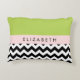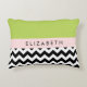 Black and White Zigzag, Chevron, Grönt, ditt namn Prydnadskudde