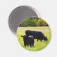 Ett foto från färg av två Black Angus-boskap som betar tillsammans i fält. Den perfekt kogåvan till herdsmannen eller land-folket.