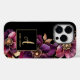 Elegant Lila Golden Blommigt Black Monogram Phone case. 3 blommor i djupröda, lila och gyllene detaljer och löv är grupperade i en mjuk båge på högerna av detta telefonfodral. Ett svart och guldfärgat ram med ditt monogram brev och fullt-anpassade för dig placeras i mitten på nedre delen av yta. Fodral finns i många storlekar och modeller. Sök efter under "Enhetstyp". Se även matcha produkter med samma designtema som affärskort och planerare.