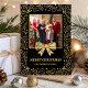 Black & Antique Gold Bow Family Christmas Photo Julkort