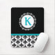 Black Aqua Monogram Fleur de Lis Mousepad Musmatta