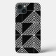 Den här telefonväskan har en konsthandbok som designar fyrkanter med diagonalt linjer.