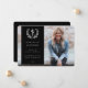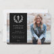 Ett formellt men modernt studenten-fotomeddelande för alla typer av medicinska kvalifikationer. Med ett fullt-blekt foto med övertäckning av färg och aduceus-symbolen omgiven av en lagerkrans. Malltexten för student är helt och hållet anpassade, så teckensnittet storlekt, stil, färg och placering kan ändras. Baksidan har en heltäckande färgad och malltext för ett längre meddelande. Om du inte vill ta med någon text på baksidan raderar du den innan du beställer den. Om du vill ha ett foto på baksidan av kortet tar du bort både bakgrunden till färgaden och malltexten och överför ett eget foto. Utformningen är tillgänglig i andra färg och med design för specifika medicinska kvalifikationer (MD, RN, DO) i min butik.