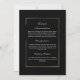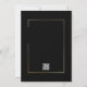 This black background with a gold frame is an enclosure card that provides all the details for your guests. All information is able to be customized and a QR code on the back is available to give your guests the ability to see more information on your website